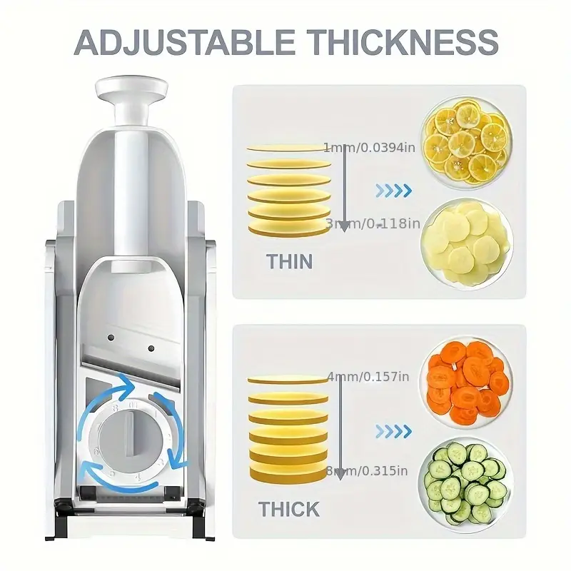 🔪 Nastavite debelino in širino rezin z enim obratom gumba