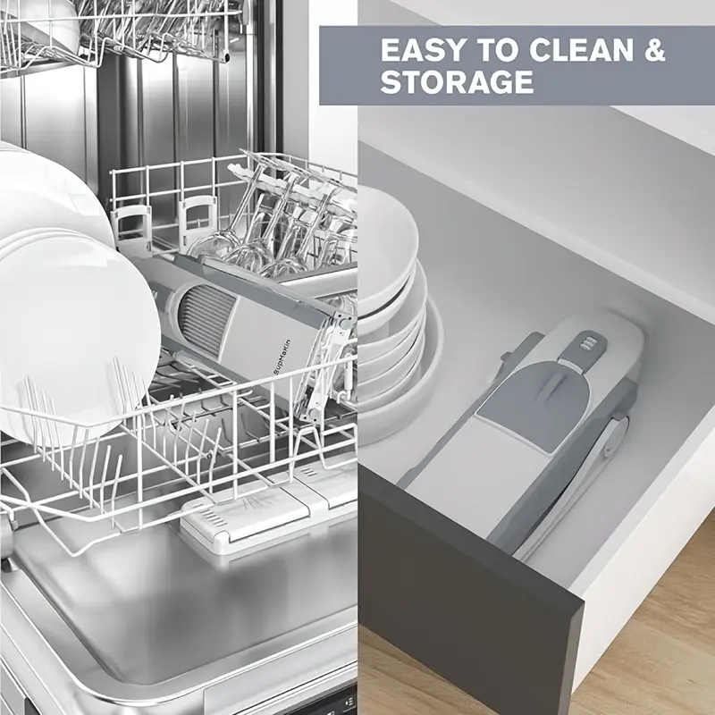 Po uporabi CHOP-UP enostavno splaknete pod vodo ali ga postavite v pomivalni stroj. Ni potrebe po razstavljanju naprave, kar vam prihrani čas in trud pri čiščenju.