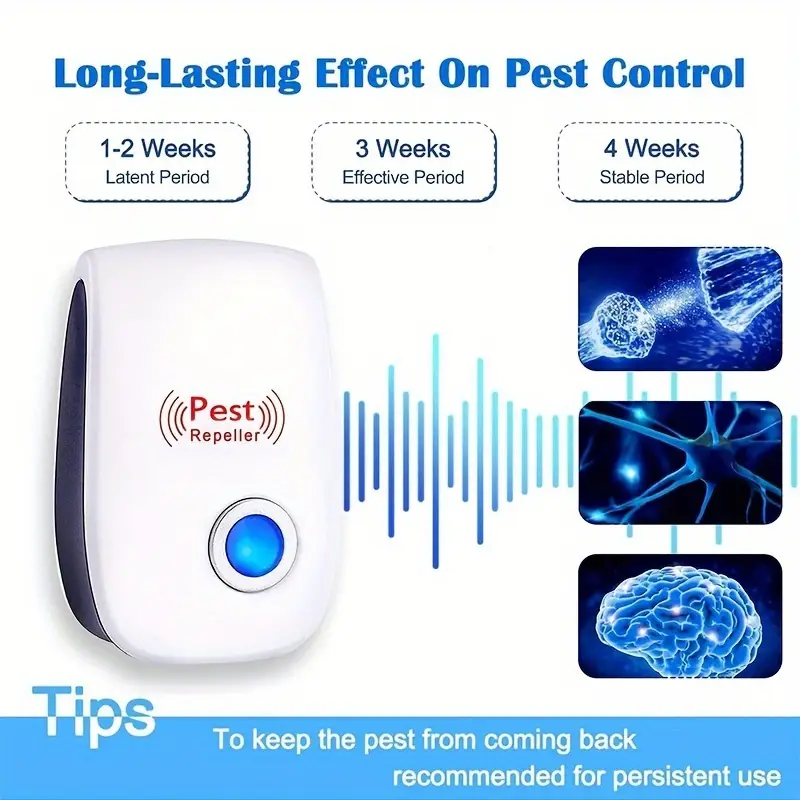 Ni potrebe po polnjenju, nastavitvah ali vzdrževanju – preprosto ga vklopite v vtičnico in naj dela za vas! Za najboljše rezultate ga postavite nižje za glodavce in višje za leteče žuželke.